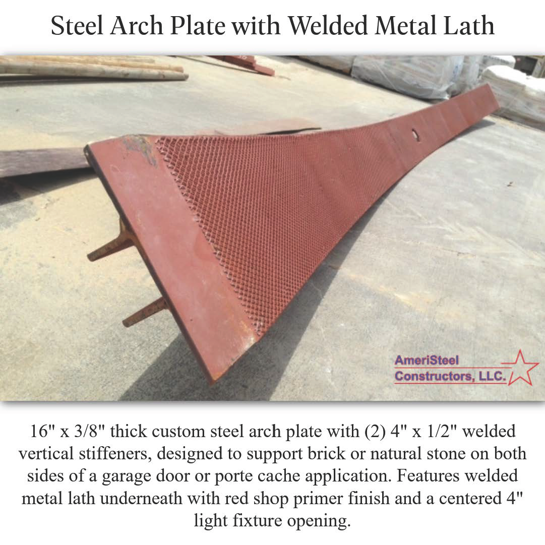 Arched Lintels and plates are used to support the masonry above windows, entires, doors, porte-cacheres. AmeriSteel can produce steel arch lintels or paltes that are small, large, narrow, wide, primer coatin, or hot dipped galvanized